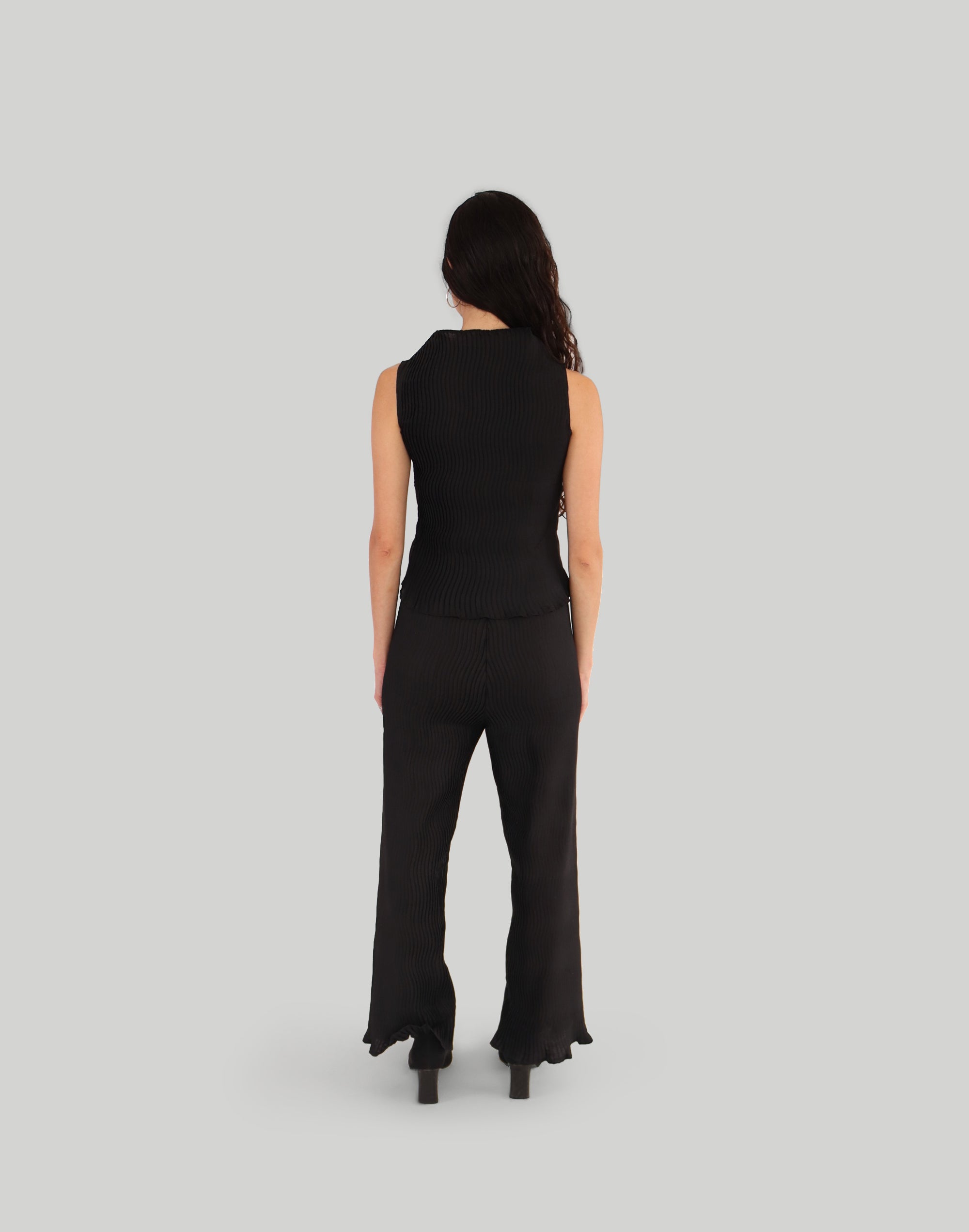 PLEATS NIN - All items are pleated locally within a 1 km radius of our studio. We work with a family owned Mexican business to heat press the design onto the fabric.