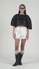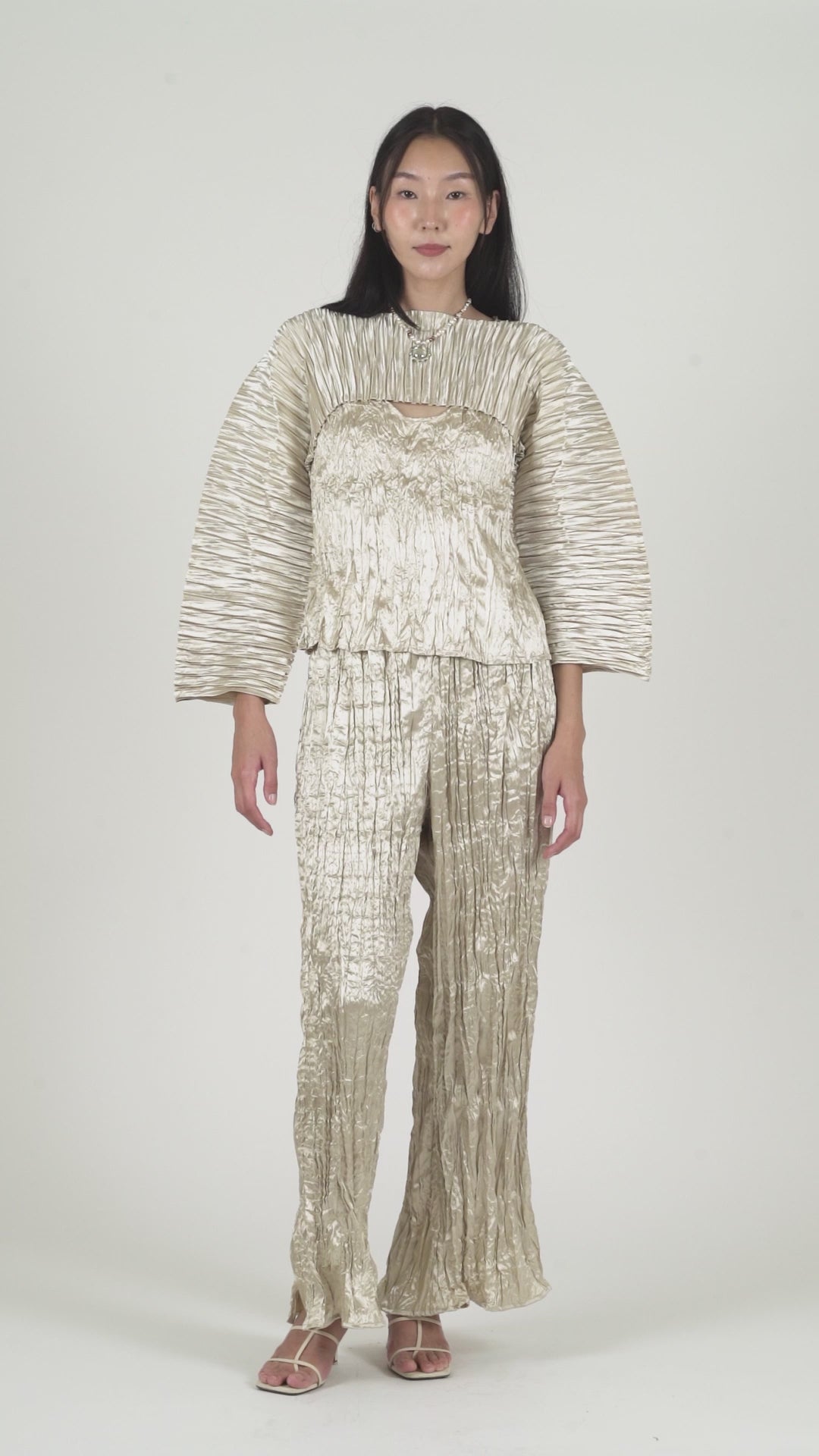 Wear it over a dress, as an extra layer on a chill day, or make a statement with just a bra, this pleated ultra crop top is all about the proportions. With structural long sleeves and an open chest, the pleated shirt is all about the layers, baby.
